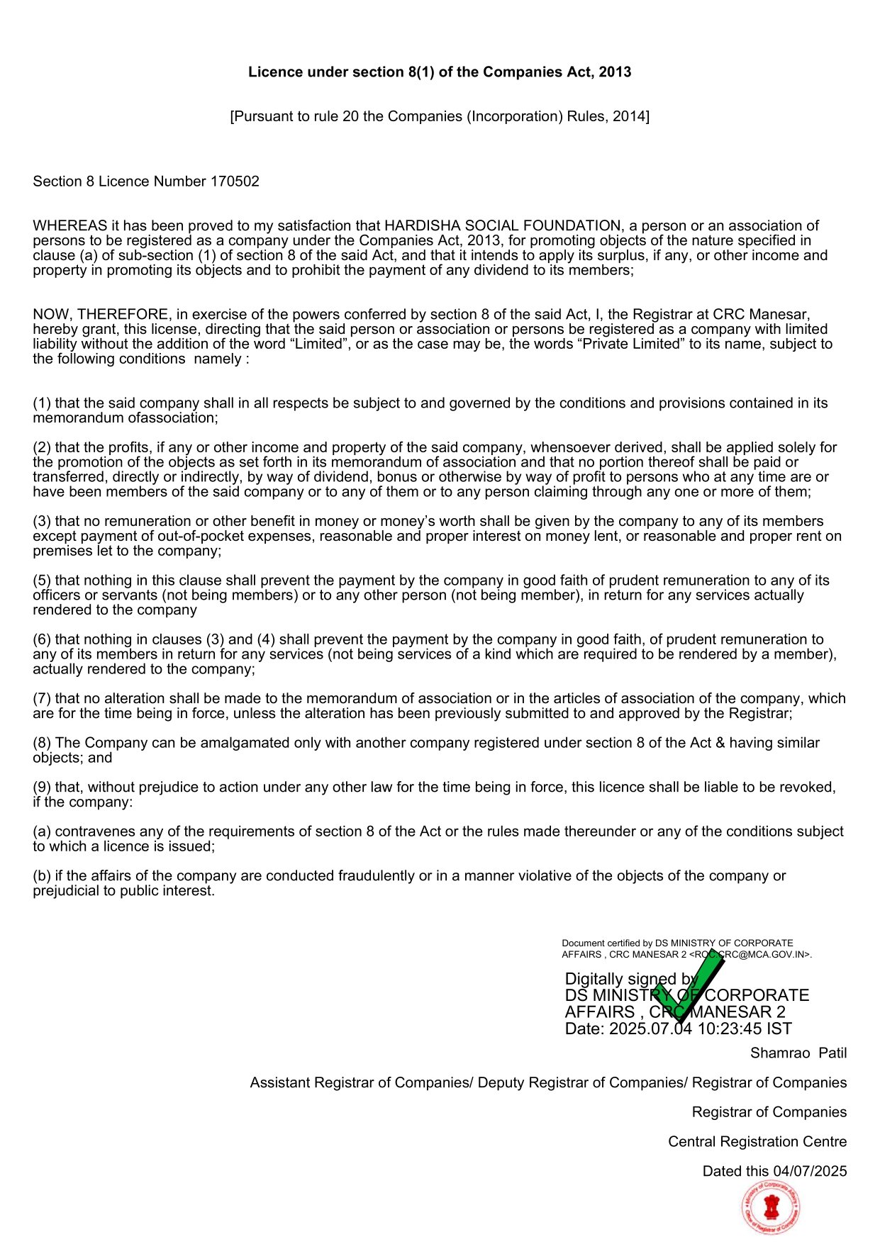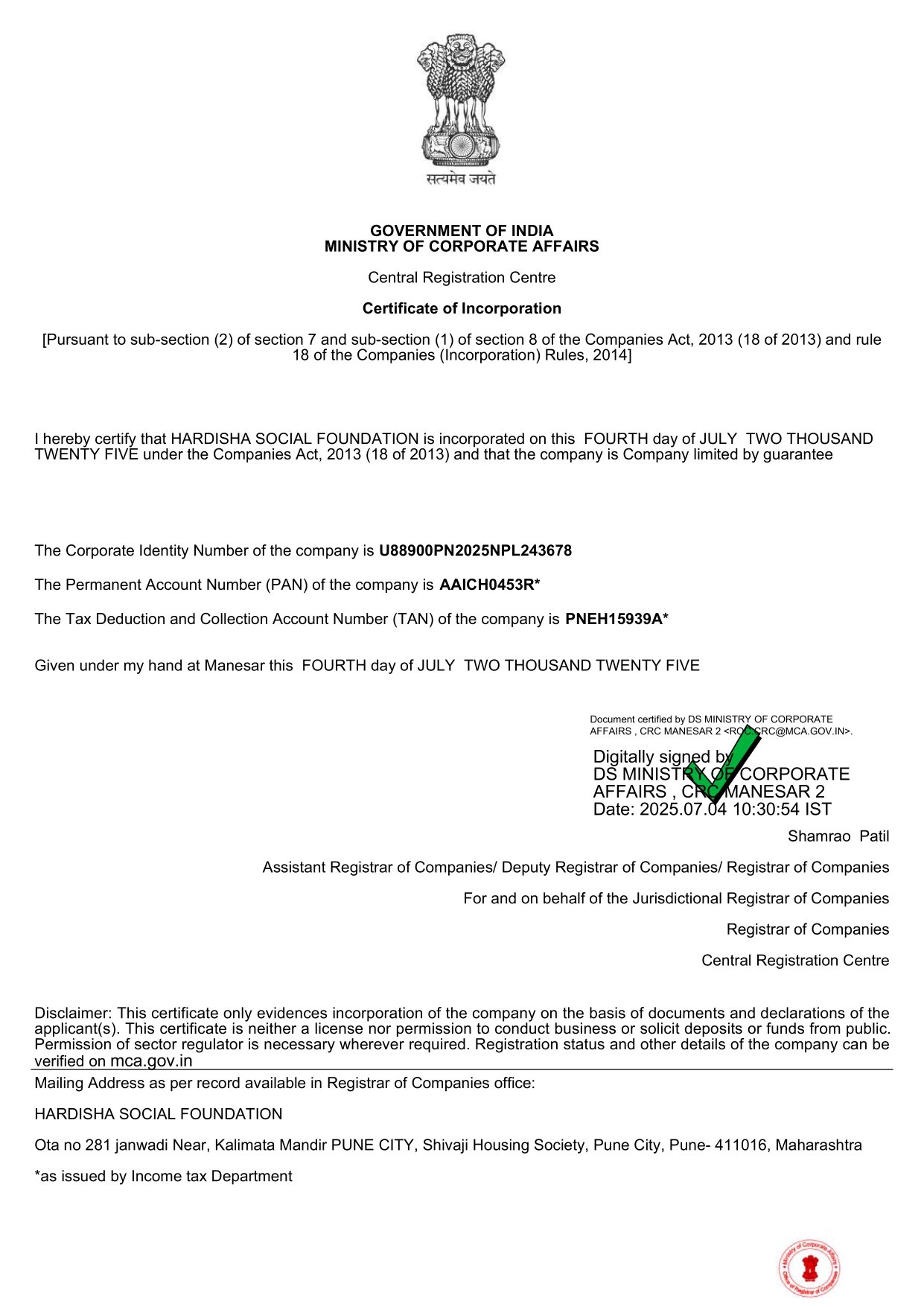 We are a transparent, government-registered organization.